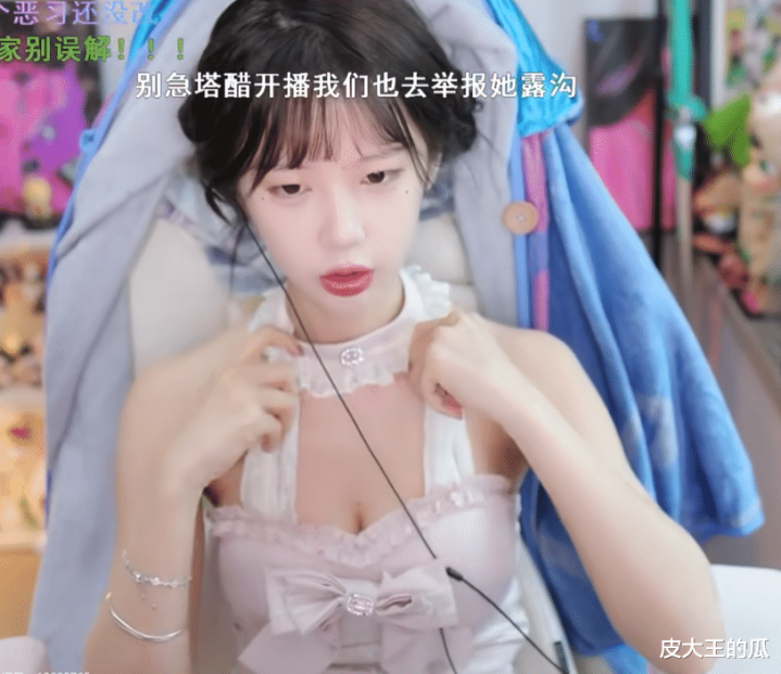 此时艾琳发现可能是自己的服装有问题,在镜头到角度来看,自己这个衣服还是有一点点漏的,所以艾琳再次出现在直播间的时候,还特意把衣服往上提了提,可是衣服还是会往下掉,不出意外的是,直播间再一次被封了。