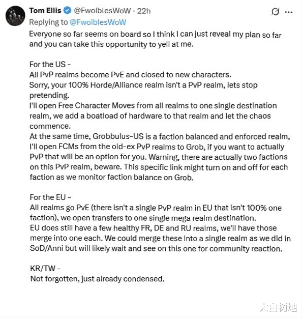 2025年9月13日,魔兽世界高级游戏制作人汤姆·埃利斯在社交平台发布重磅消息:怀旧服将启动全球服务器合并计划,并首次在PVP服务器中引入强制阵营平衡机制,该调整或将于未来应用于国服巫妖王之怒版本及后续内容。