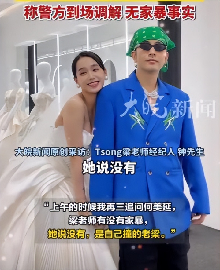 用头撞梁淞,反而把自己给弄伤了,这才编造出一个“家暴”的谎言。