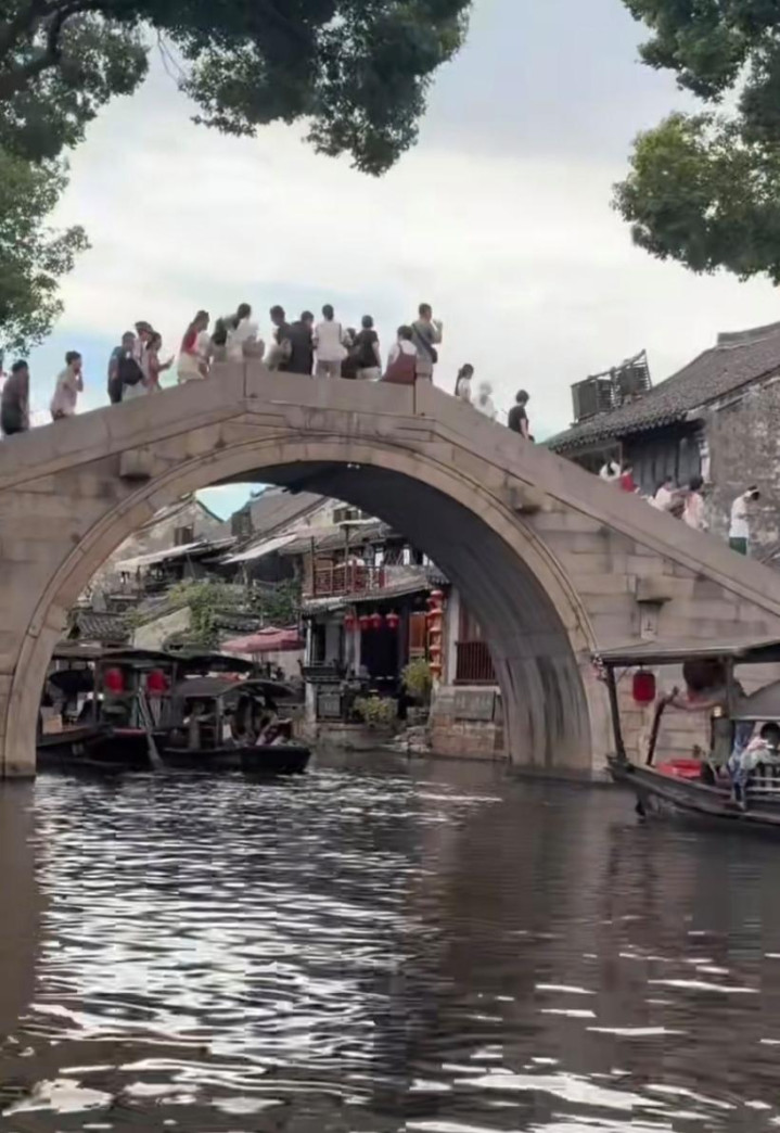 桥上挤满了无数游客,密密麻麻,有的在拍照取景,有的在合影,各自比较繁忙,小编站在桥上,远远望去,眼前的景色如诗如画,美不胜收,让人不禁感叹大自然的鬼斧神工和古人的智慧。