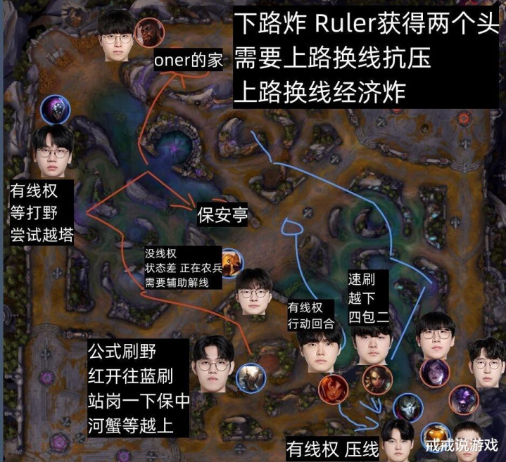 决胜局的博弈从BP阶段就充满火药味。DK出人意料地选出中单蛮王,搭配发育型上单格温和下路小火龙,整个阵容偏向后期。T1则抢下鳄鱼,并搭配机器人与巨魔的特殊联动体系,中单维克托负责撑起团队后期输出。