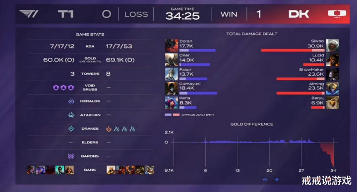 首局较量中,T1祭出他们最擅长的进攻体系,然而DK展现了惊人的韧性,稳稳守住局势。Swiwo的狼母在战场上自由穿梭,带领DK先拔头筹。第二局风云突变,Lucid选择齐亚娜打野但熟练度明显不足,在下路送给Oner双杀后节奏大乱。T1在中期的厄塔汗团战中大获全胜,一举扳平比分。