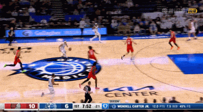 次节比赛,夏普投篮得手,西索科命中罚球,瓦格纳和阿夫迪亚先后命中罚球,艾萨克命中三分,卡特扣篮得手,艾萨克两罚全中,魔术队7-0领先6分。夏普连得4分,班凯罗和瓦格纳连续得分。比塔泽打成2+1,霍勒迪投篮得手,比塔泽两罚全中。夏普和西索科连得5分缩小分差,班凯罗连续砍分稳住局面,西索科和比塔泽先后命中罚球,格兰特一人连得7分缩小到仅差1分。瓦格纳两罚全中,阿夫迪亚命中三分抹平分差。班凯罗连投带罚独得5分,阿夫迪亚跳投得手,开拓者队56-59落后魔术队结束上半场比赛。