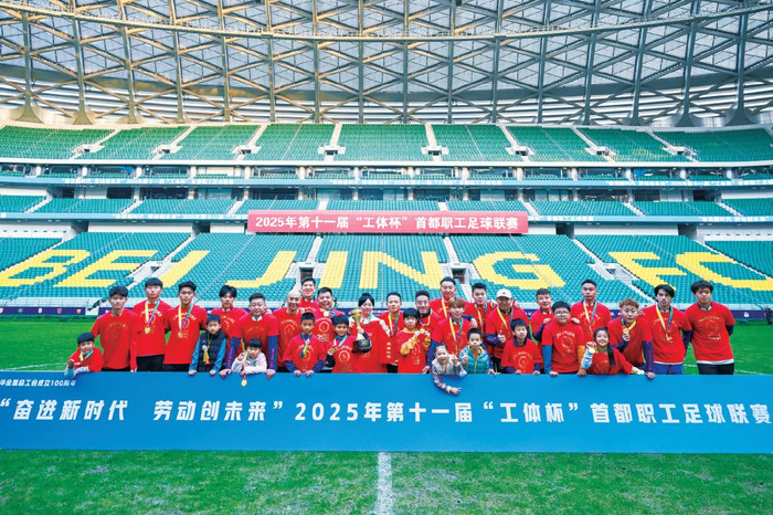 本届赛事在中国职工文化体育协会指导下,由北京市总工会、北京市体育局、北京市社会体育管理中心、北京市足球运动协会共同举办。赛事相关负责人介绍,作为庆祝中华全国总工会成立100周年的重要文体活动之一,本届赛事吸引了来自全市16个区、北京经济技术开发区和8个市级产业工会的25支代表队,逾700名职工运动员参与,不仅是一场竞技比拼,更是首都职工体育文化生活的一次集中展示。截至目前,本届“工体杯”联赛已成功带动近15万首都职工参与足球运动,推动了职工体育事业的发展与全民健身理念的深入。文/段西元摄/曹立栋