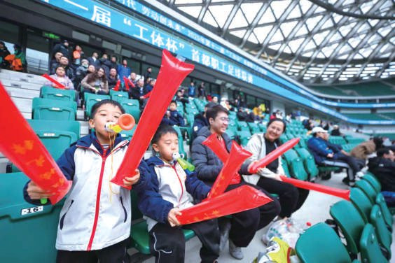 赛后,热烈的氛围弥漫整个工体。朝阳区总工会代表队队员纷纷换上红色冠军纪念衫,并将部分冠军服赠予一路相随、几乎场场不落的忠实球迷,共享胜利喜悦。西城区总工会代表队的学生啦啦队充满活力的加油声,同样成为这场足球赛事中亮丽的风景,让更多人感受到足球运动的独特魅力。领奖台上,许多球员与前来助威的家人共同高举奖杯、奖牌,温馨画面令人动容。决赛通过全国职工文体活动平台和北京工会App等同步直播,由北京广播电视台主持人赵文龙、毛正宇现场讲解。
