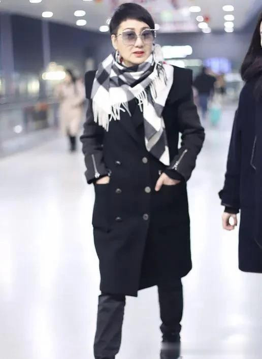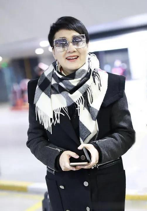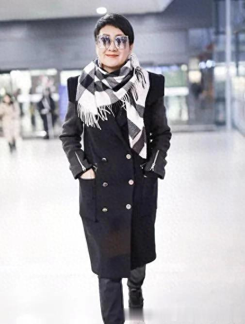 张凯丽真是阿姨辈的穿搭标杆! 大衣+格纹围巾+黑裤子, 时髦又高级